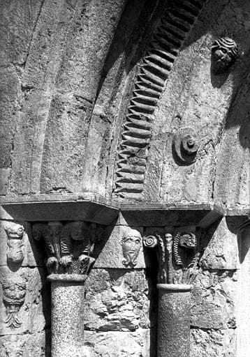 Façade sud, portail : chapiteaux et archivolte à dextre