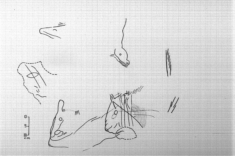 Relevé de la galerie des Félins, passage aux chevaux : figure 5 (a-b-c-d-e)