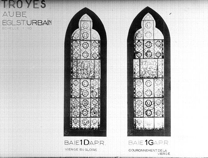 Photomontage de vitrail, baies 1D et 1G : Assomption et Couronnement de la Vierge, état après restauration