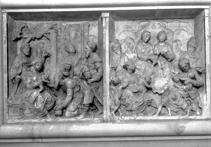 POP | Plateforme ouverte du patrimoineCroisillon nord, bas-relief en pierre : l'Adoration des Mages et la Sainte Parenté