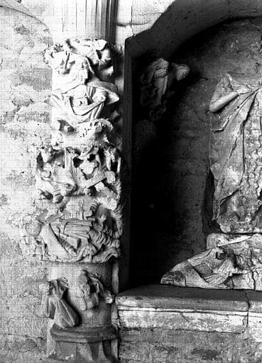 POP | Plateforme ouverte du patrimoineCloître, galerie nord : retombée de voûte sur colonne à figures sculptées