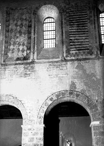 Mur sud de la nef : restes de peintures murales et parties hautes