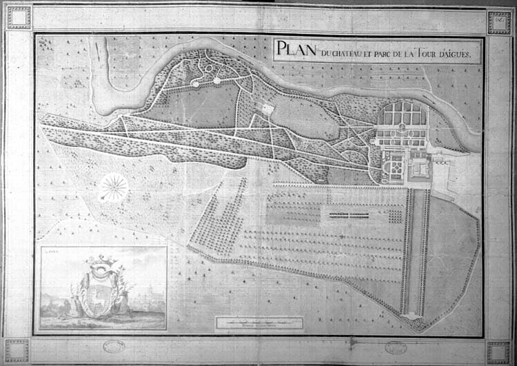Gravure : plan du château et du parc