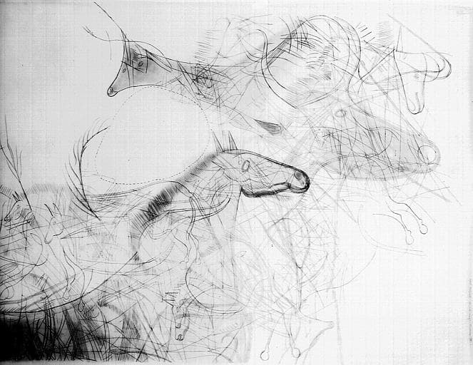 Calque de la partie dextre du panneau II du plafond : cheval rouge