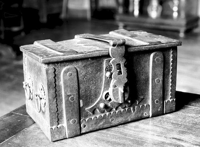 POP | Plateforme ouverte du patrimoineCoffre à serrure et à quatre poignées fer, situé dans la grande salle du rez-de-chaussée