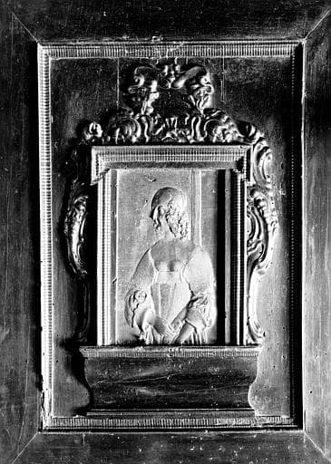 POP | Plateforme ouverte du patrimoineSalle 17e siècle du premier étage : jacquet en bois orné d'un portrait sculpté de Marie Mancini, fermé