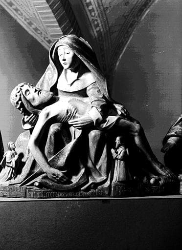 POP | Plateforme ouverte du patrimoineGroupe en pierre peinte : Vierge de Pitié, donateurs Jean et Goussen de La Garrigue