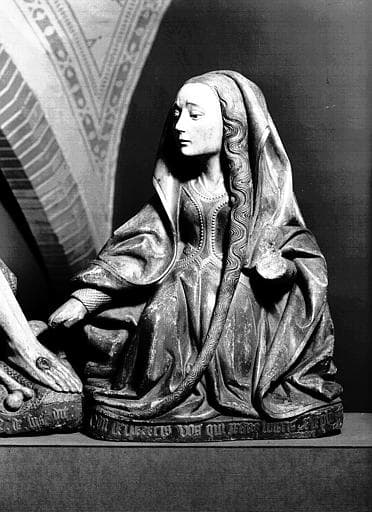 POP | Plateforme ouverte du patrimoineGroupe en pierre peinte : Vierge de Pitié des La Garrigue, détail de la Madeleine