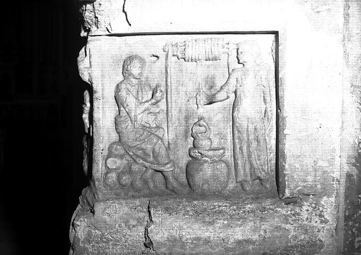 POP | Plateforme ouverte du patrimoineBas-relief en pierre, fragment encastré sous la tribune : Christ et la Samaritaine