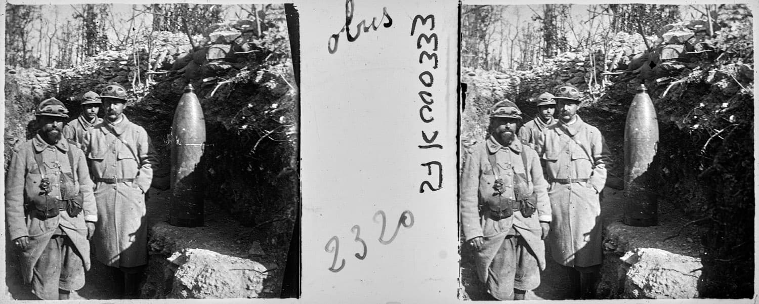 POP | Plateforme ouverte du patrimoineTrois soldats à côté d'un obus