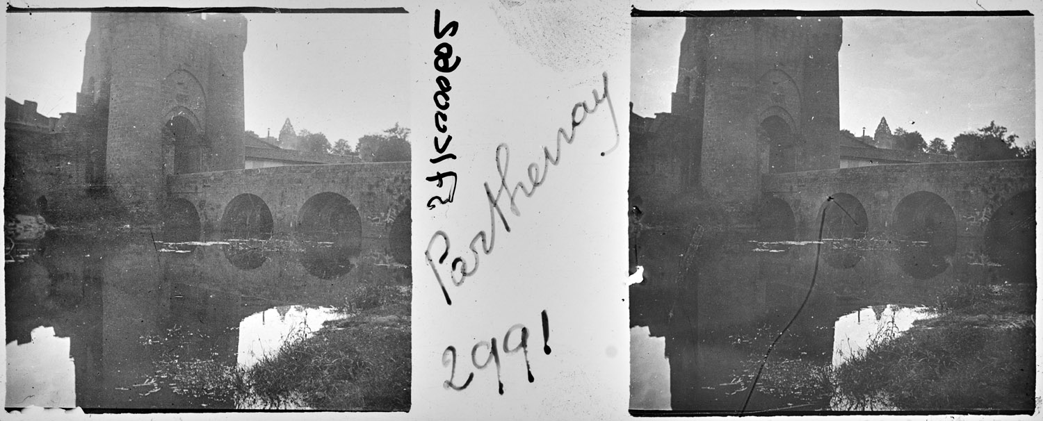 Positif noir et blanc pour projection ; Support verre ; Gélatino-argentique ; Vue stéréoscopique