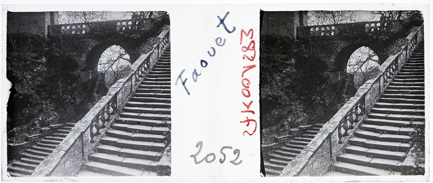 Positif noir et blanc pour projection ; Support verre ; Gélatino-argentique ; Vue stéréoscopique