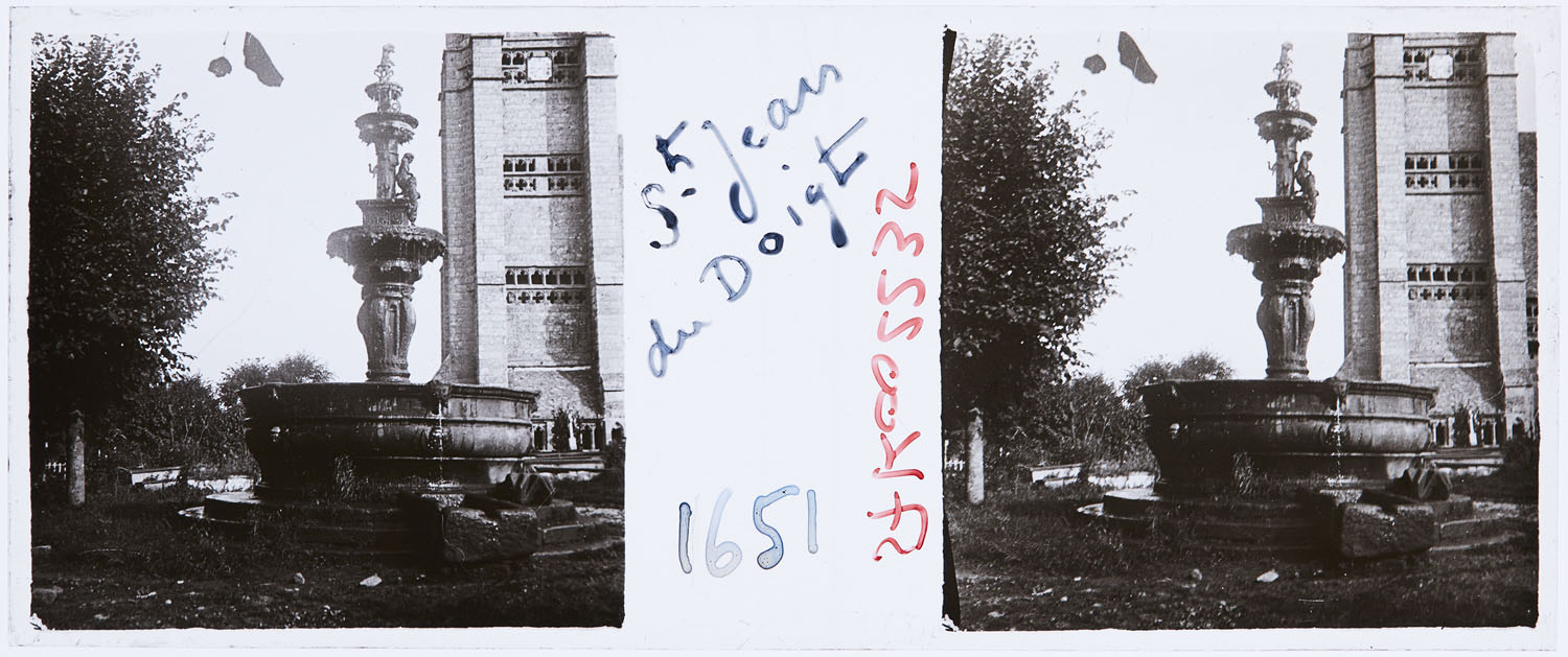 Positif noir et blanc pour projection ; Support verre ; Gélatino-argentique ; Vue stéréoscopique
