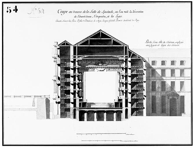 POP | Plateforme ouverte du patrimoineCoupe transversale vers la scène, d'après les dessins de Gabriel