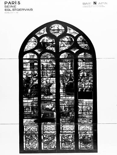 POP | Plateforme ouverte du patrimoinePhotomontage de vitrail, baie N : Baptême du centurion Corneille par saint Pierre, état après restauration