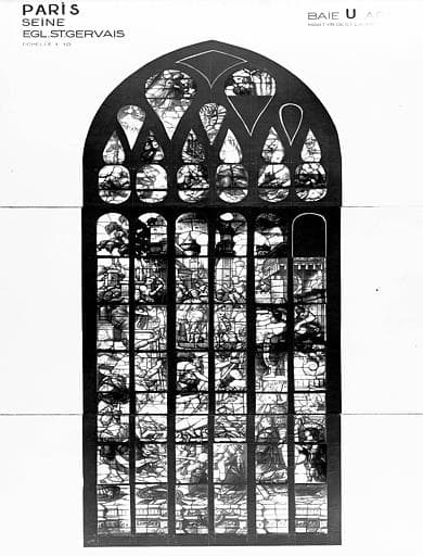 POP | Plateforme ouverte du patrimoinePhotomontage de vitrail, baie U : Martyre de saint Laurent, état après restauration