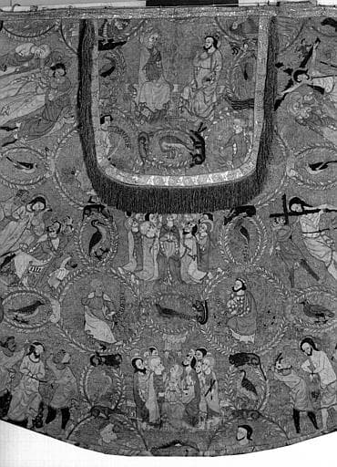 Chape dite de la Passion, broderies de soies polychromes et fils d'or sur fond blanc, Angleterre supposé : partie centrale