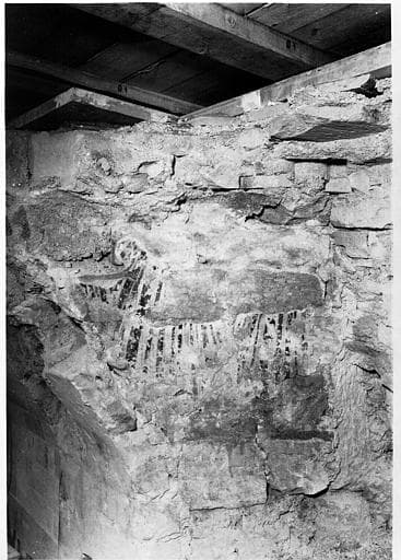 Crypte : vestiges de peintures murales (supposées), traits noirs