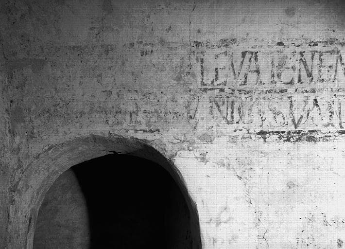 POP | Plateforme ouverte du patrimoineCrypte, déambulatoire : inscription sur l'ébrasement senestre de l'ouverture sur la Confession, première partie