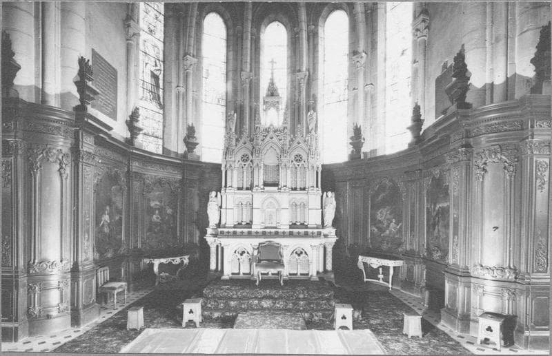 POP | Plateforme ouverte du patrimoinelambris de revêtement, 2 crédences, 4 tableaux : Jésus au puits de Jacob, le Retour du fils prodigue, le Sacrifice d'Abraham, autre tableau non identifié (vue d'ensemble)