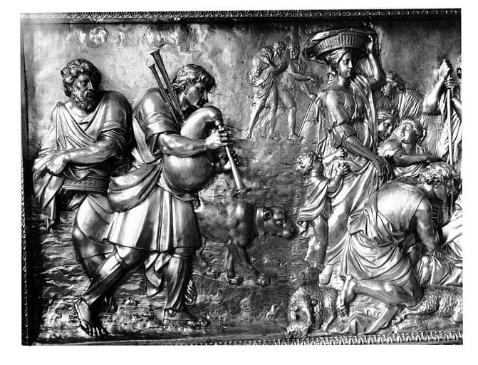 Tombeau d'autel en métal doré : partie à dextre