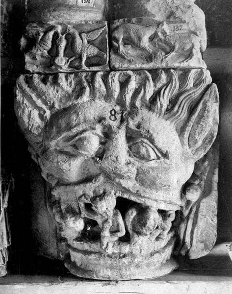 chapiteau : tête de monstre d'où sortent par sa bouche des êtres