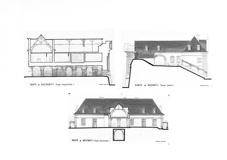 POP | Plateforme ouverte du patrimoinePlan de la façade latérale : coupes transversale et longitudinale