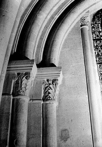 Massif ouest, deuxième travée nord : arcade du mur nord, chapiteaux, côté ouest