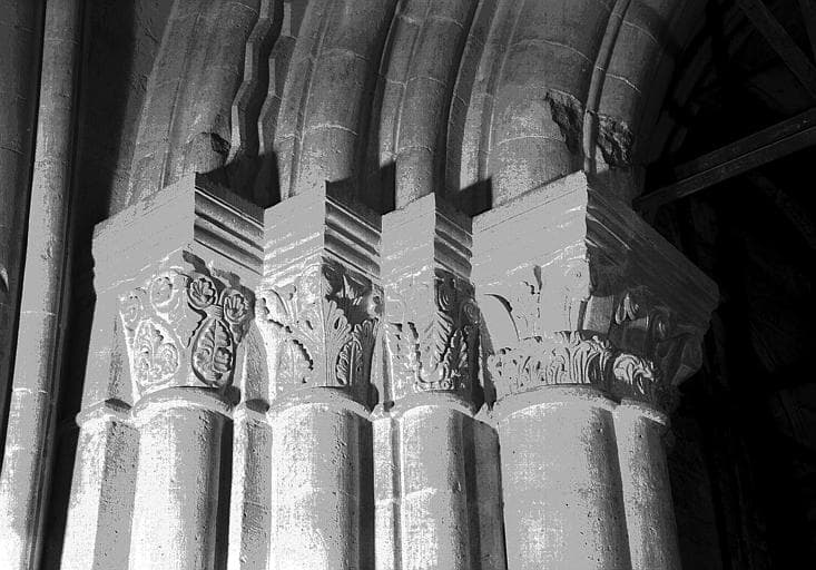 POP | Plateforme ouverte du patrimoineMassif ouest, deuxième travée nord : arcade entre les deux travées, chapiteaux, côté nord