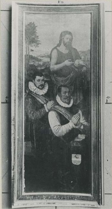 retable triptyque : Saint Jean-Baptiste, hommes en donateurs