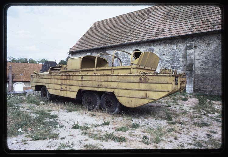 Véhicule du Débarquement devant la grange