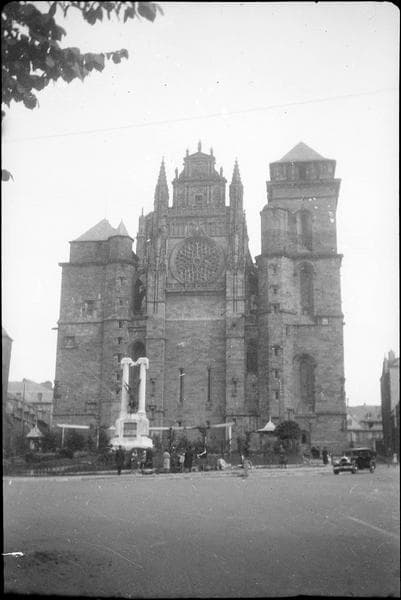 POP | Plateforme ouverte du patrimoineFaçade ouest de la cathédrale et monument aux morts (détruit en 1974) sur une place animée