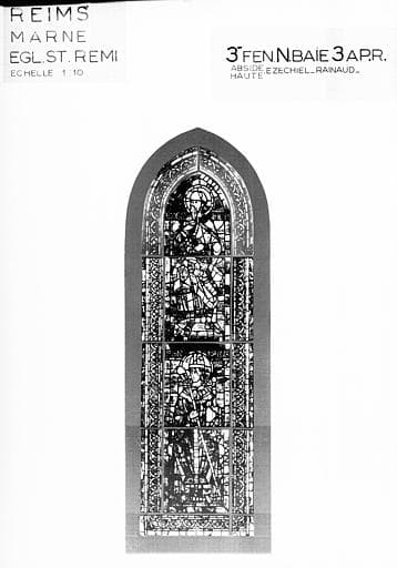 Photomontage de vitrail, abside haute : baie 3N, Ezéchiel, Rainaud, état après restauration