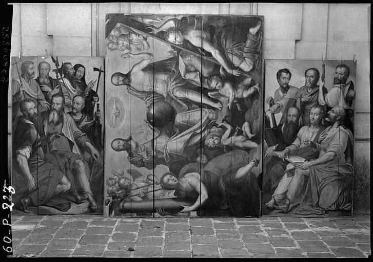 POP | Plateforme ouverte du patrimoinePanneaux peints de triptyque : Trinité, anges de la Passion, apôtres, état avant restauration