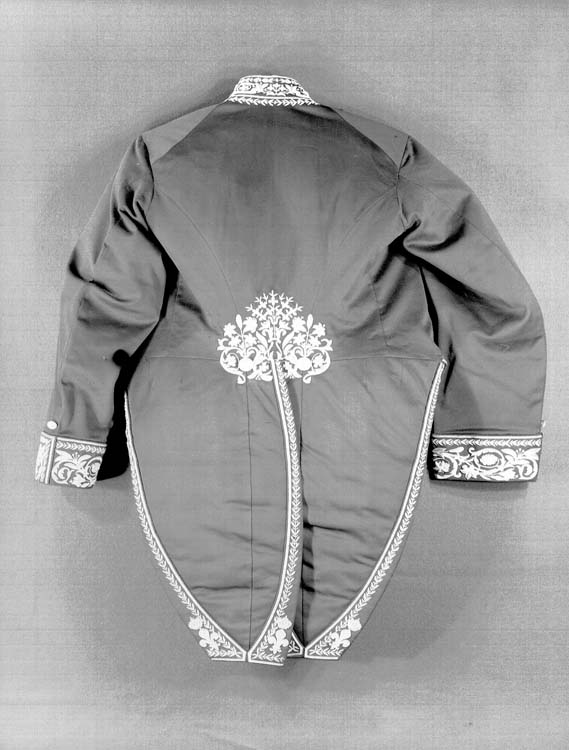 Habit du Grand Ecuyer en Survivance Comte René de Monti Rézé, pour l'entrée du Comte de Chambord à Paris, drap noir orné de broderies d'or : dos
