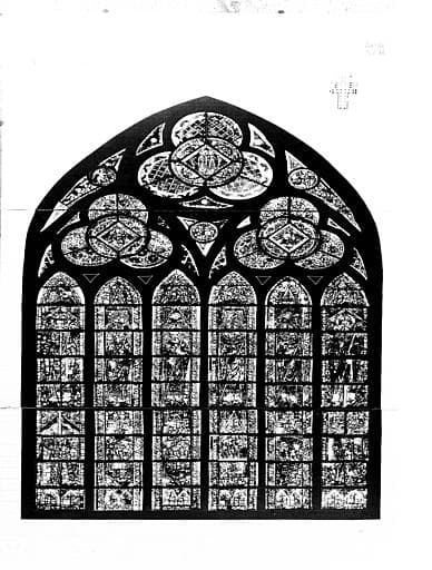 POP | Plateforme ouverte du patrimoinePhotomontage de vitrail : baie L, partie, état avant et après restauration
