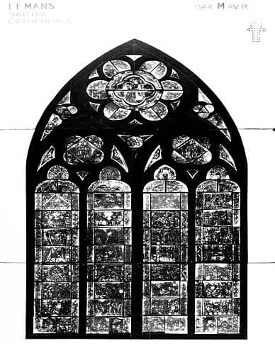 Photomontage de vitrail : baie M, état avant restauration