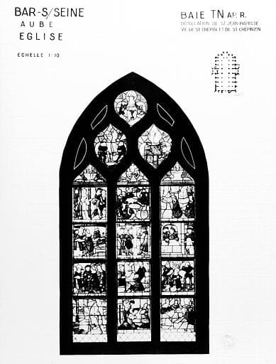 POP | Plateforme ouverte du patrimoinePhotomontage de vitrail, baie TN : Décollation de saint Jean-Baptiste, vie de saints Crespin et Crépinien, état après restauration