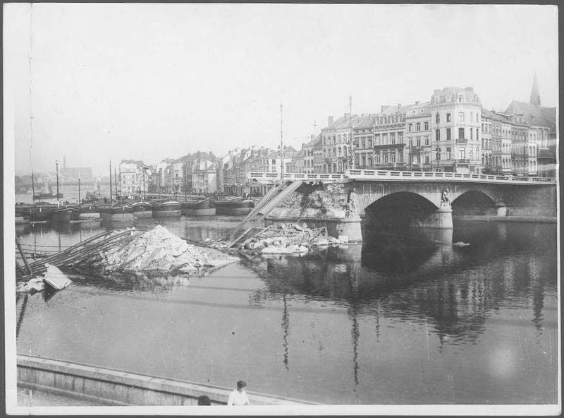 Le pont détruit. « Liège détruit par les Allemands »
