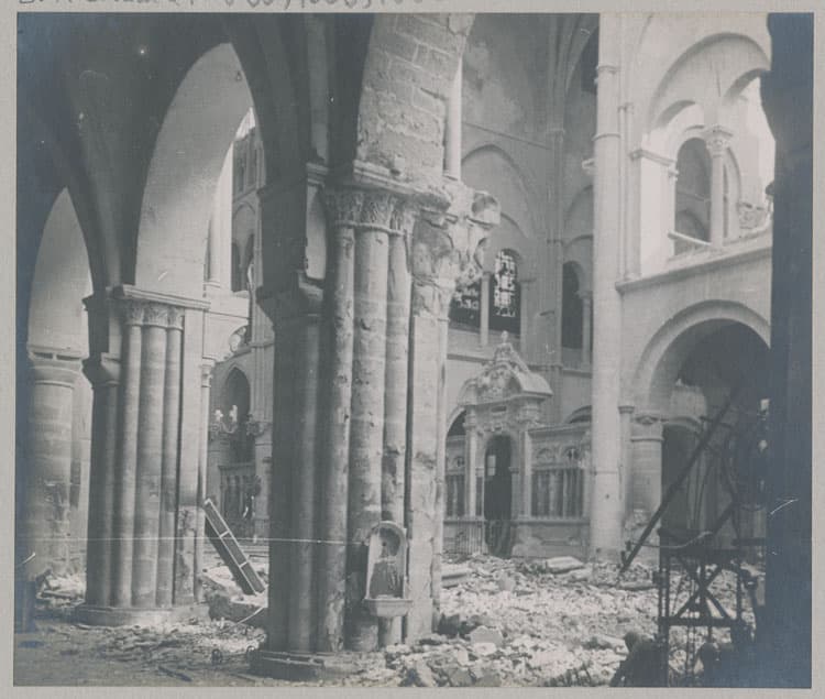 POP | Plateforme ouverte du patrimoineLa nef et la clôture de choeur depuis le bas-côté nord, détériorées les bombardements