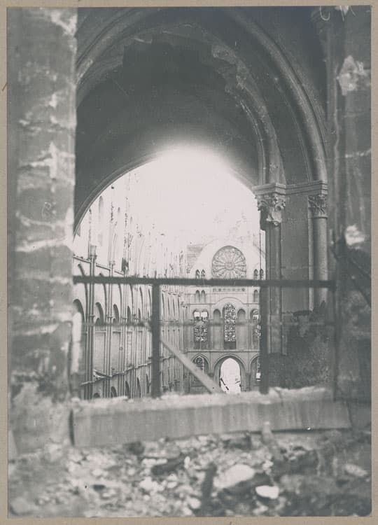 POP | Plateforme ouverte du patrimoineLa nef et l'entrée, depuis la tribune du chevet ; Voûte effondrée suite aux bombardements