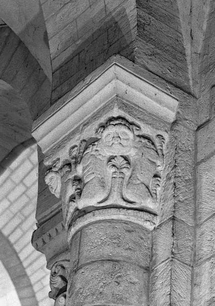 POP | Plateforme ouverte du patrimoineIntérieur, nef, neuvième pilier sud, demi-colonne engagée sud : chapiteau orné d'animaux, côté sud-est