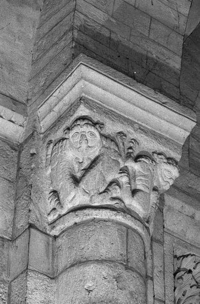 POP | Plateforme ouverte du patrimoineIntérieur, nef, neuvième pilier sud, demi-colonne engagée sud : chapiteau orné d'animaux, côté sud-ouest