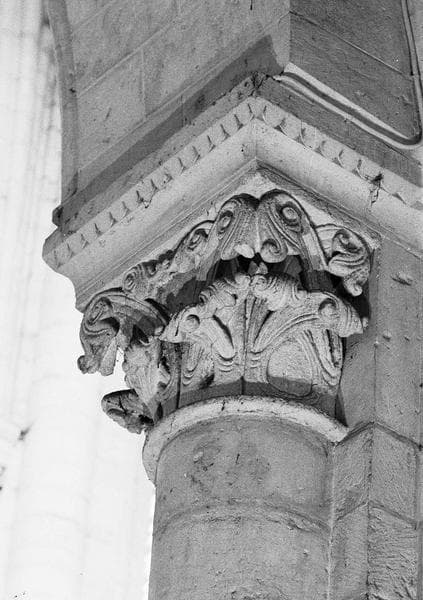 POP | Plateforme ouverte du patrimoineIntérieur, nef, neuvième pilier sud, demi-colonne engagée ouest : chapiteau orné de feuilles d'acanthe, côté sud-ouest