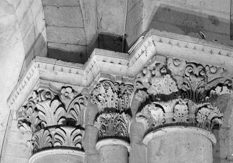 POP | Plateforme ouverte du patrimoineIntérieur, nef, sixième pilier sud, demi-colonnes engagées sud et est : chapiteaux ornés de feuilles d'acanthe
