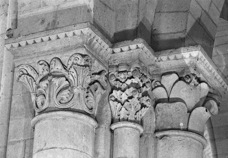 POP | Plateforme ouverte du patrimoineIntérieur, nef, quatrième pilier sud, demi-colonnes engagées sud et ouest : chapiteaux ornés de feuilles d'acanthe