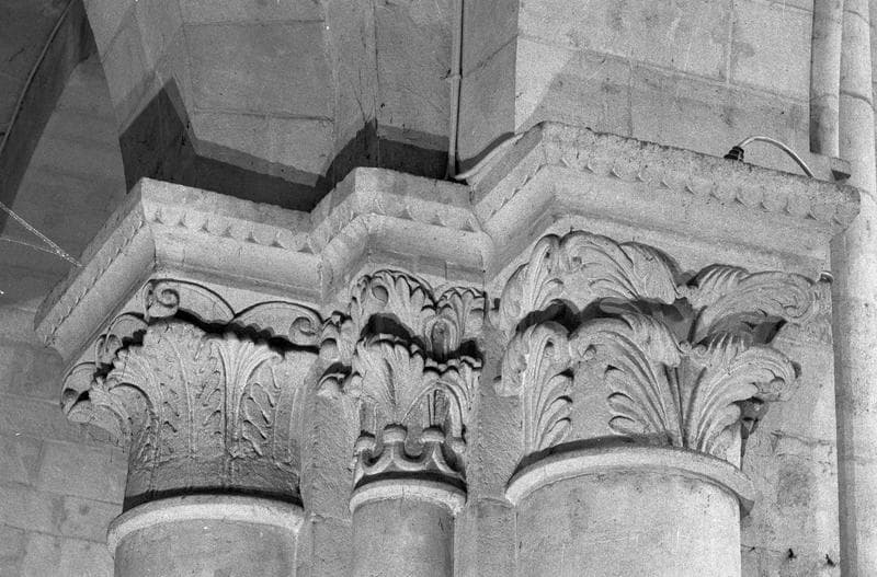 Intérieur, nef, huitième pilier nord, demi-colonnes engagées nord et ouest : chapiteaux ornés de feuilles d'acanthe