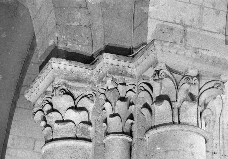 Intérieur, nef, sixième pilier nord, demi-colonnes engagées nord et ouest : chapiteaux ornés de feuilles d'acanthe