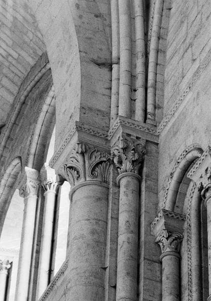 POP | Plateforme ouverte du patrimoineIntérieur, nef, huitième pilier sud : retombée des arcs de la voûte sur chapiteaux ornés de feuilles d'acanthe