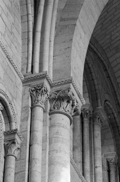 POP | Plateforme ouverte du patrimoineIntérieur, nef, huitième pilier nord : retombée des arcs de la voûte sur chapiteaux ornés de feuilles d'acanthe